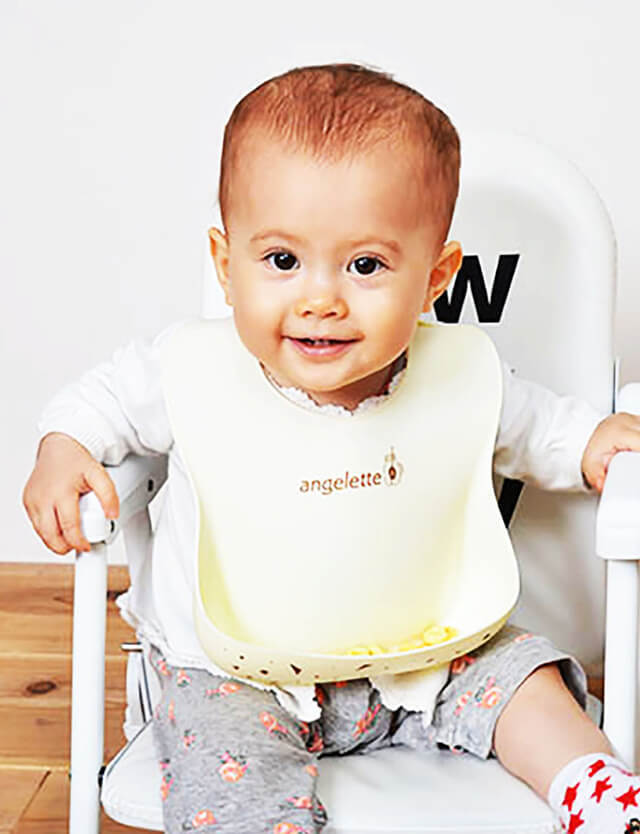 120gと軽量のソフトシリコンで作られたエプロンは赤ちゃんの身体にやわらかくフィット。