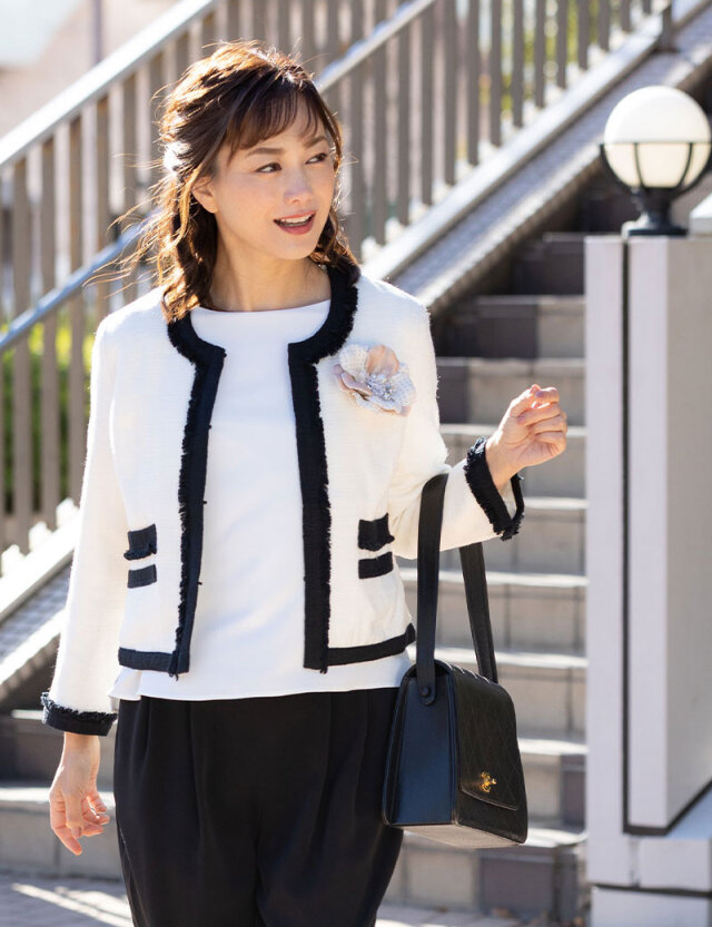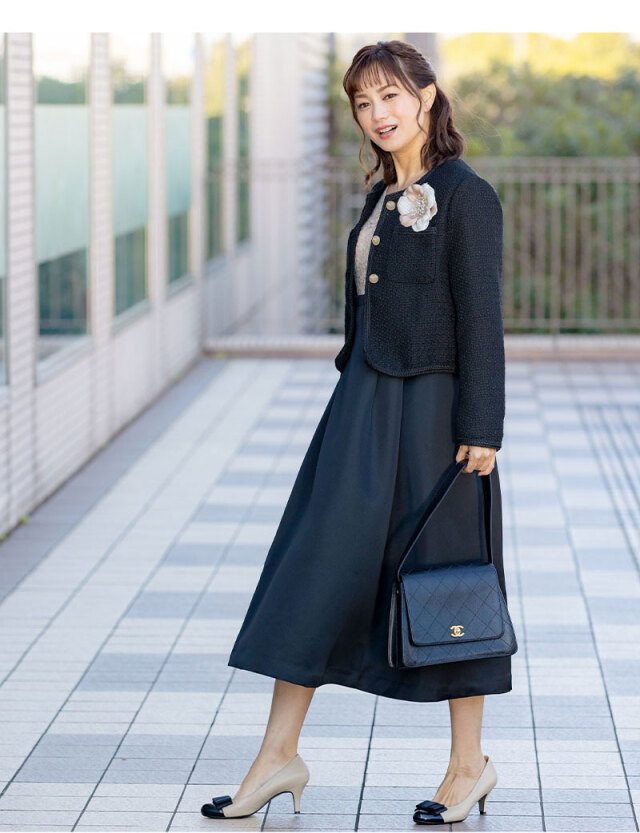 授乳服マタニティウェア ウール混 ツィードコンビ フォーマルセットアップ/ネイビーに合わせるために購入しました。これがあるだけで華やかに見えます。