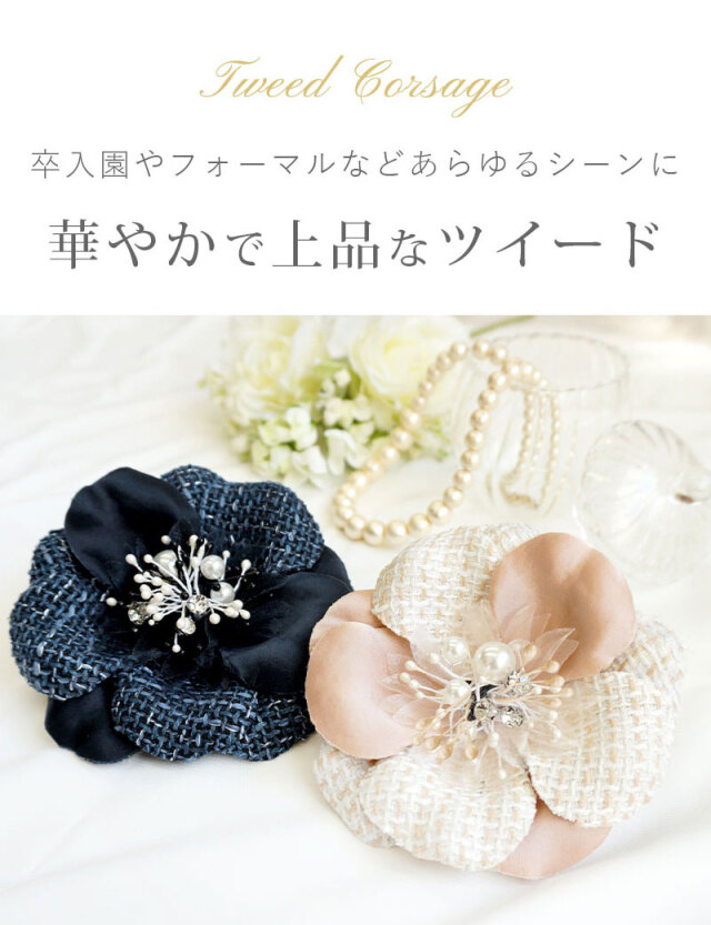 ツイード コサージュ 2WAY フォーマル オケージョン ママ スーツ ウエア 服 洋服 入学式 入園式 卒業式 卒園式 卒入園 お宮参り 学校行事 コサージュ ツイード アクセサリー グッズ ピン ブローチ 小物 華やか パール ラインストーン オーガンジー ハレの日 花 フラワー