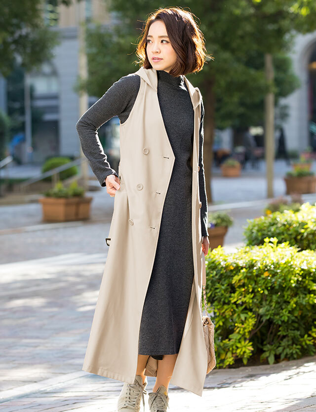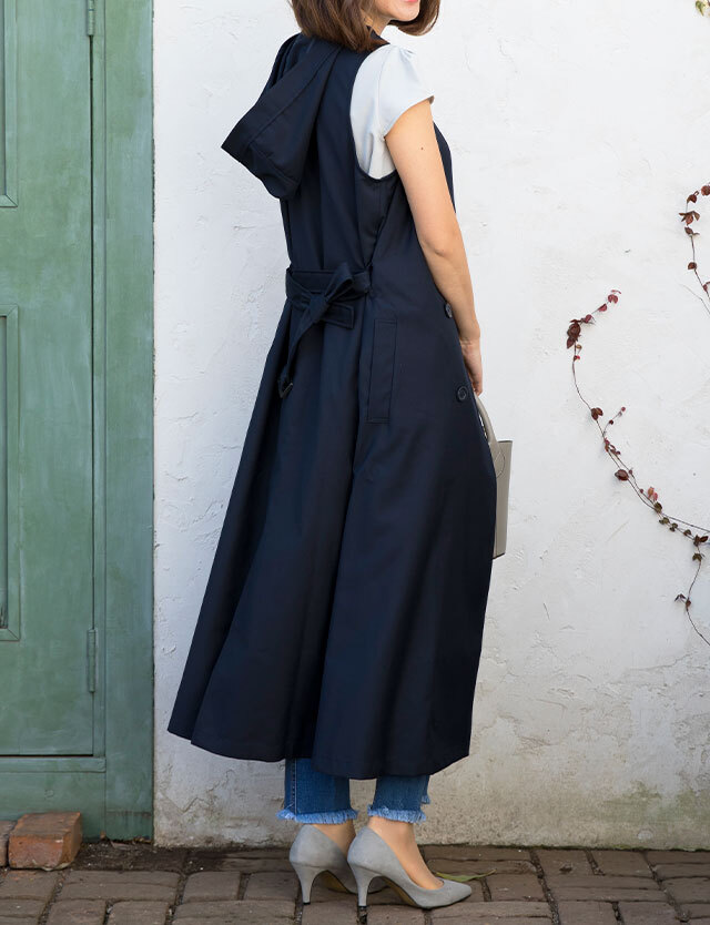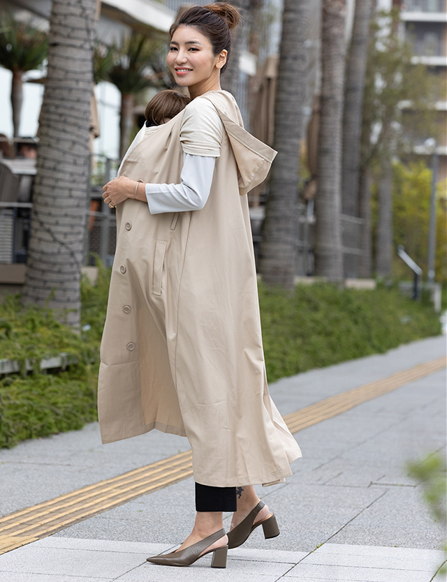 | 製品名: | 授乳服マタニティウェア トレンチ風 フード付きジレワンピース |