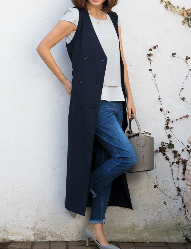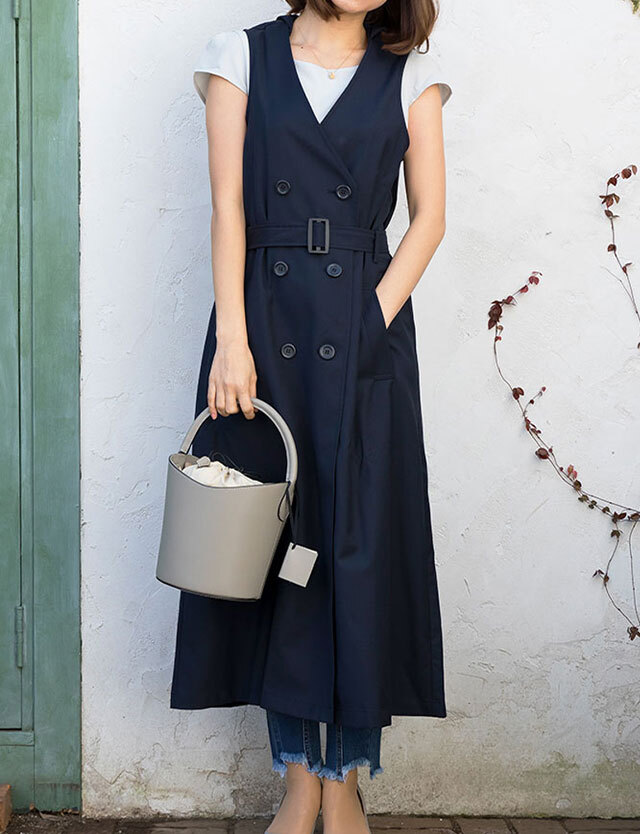 重たいコートを脱ぐこれからの季節にぴったり!スタイリッシュなトレンチ風デザインのロングワンピースです。 しっかりとした上品素材で体のラインを拾わず、スラリと見せてくれるシルエットに思わず振り返るおしゃれな1枚。