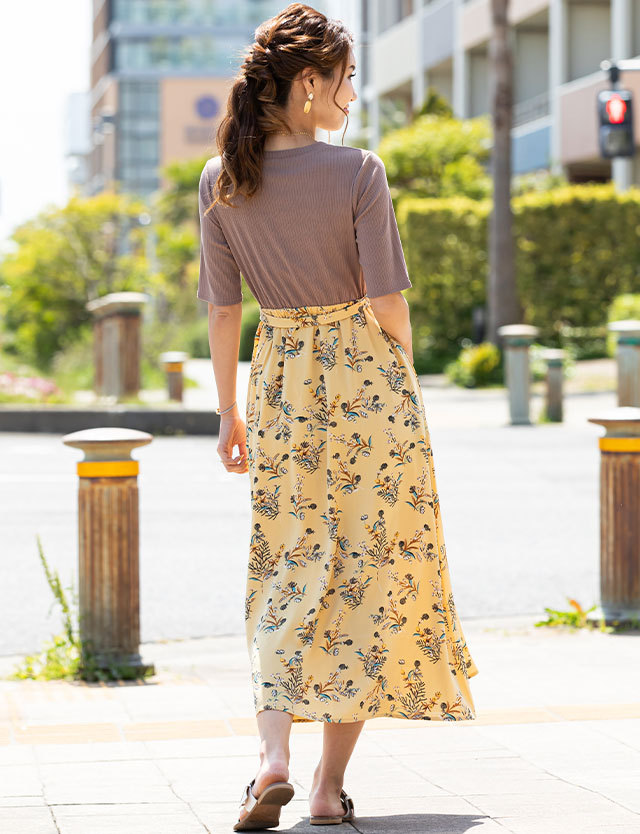 ニュアンスあるリブニット生地と、上品なボタニカル柄が大人可愛いポリエステル素材の組み合わせがとってもおしゃれなドッキングワンピースです。授乳服とマタニティウェアの通販専門店スウィートマミーおすすめの最旬アイテム。