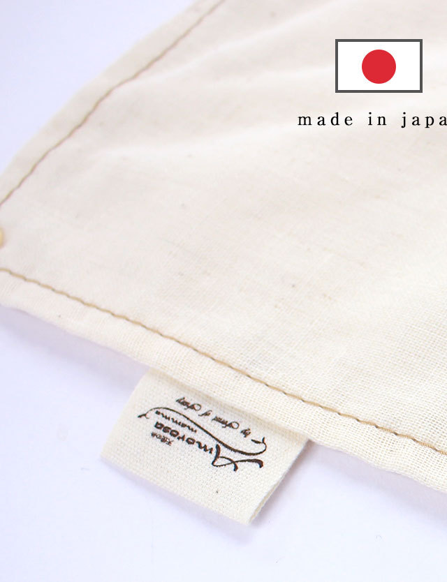 表はダブルガーゼ、裏はシングルガーゼを使用。オーガニックコットンのやわらかいガーゼ素材だからお顔周りに触れても安心。