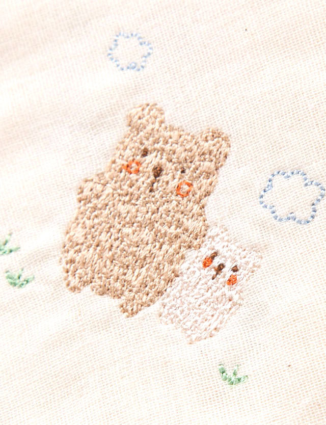 動物親子の刺しゅうがキュートなハンカチ。