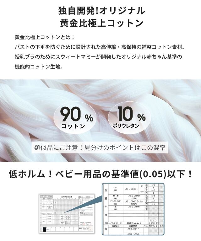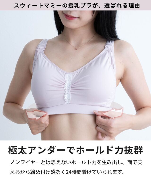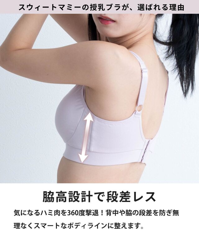 新素材、パワーコットンを使用した脇高パワーブラ。脇肉補正とワイドボーンで美胸へと美ボディをメイクアップ!ノンワイヤーとは思えないホールド力・安心の日本製のおしゃれな授乳ブラジャーです。マタニティブラジャーとしてもおすすめ。マタニティウェアと授乳服の通信販売スウィートマミーの大人気下着。