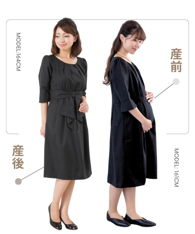 妊娠5ヶ月163.5cmで着て、膝下丈。ちょうどいいスカート丈で良かった。着心地もサラリとしてて快適。 袖が肘まであり膝下丈になっており、やや重め(暗め)に感じるため、結婚式などの場合はアクセサリーや靴で明るめにするといいのかなと思った。落ち着いた雰囲気で長く着れそう。 ウエストのリボンはボタンのため、少しつけにくい。 ポケットがあればもっといいなと思いました。(授乳口が両サイド真横だからポケットつけれなかったのかな。) 高かったけど、良かったです。 |