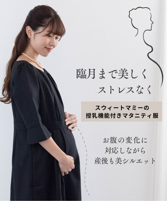 マタニティウェアと授乳服の通信販売スウィートマミーおすすめの日本製ワンピースは、入卒園、お受験、面接などにぴったり。ウールブレンドの上質素材はマタニティママの口コミで評判。取り外し可能のリボンは3WAY仕様となっており着回し力も抜群です。骨格診断で骨格ウェーブと診断された方には特にスタイルアップでご着用いただけます。