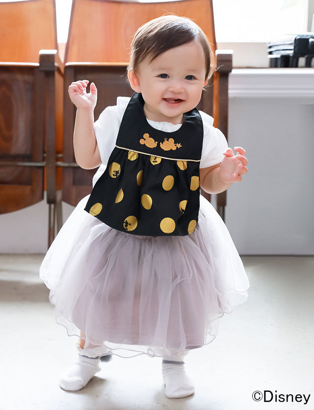 【ディズニー/ミッキー&ミニー】ドット柄ドレス ベビー服 こども服 ベビーウェア ベビードレス ミッキーマウス ミニーマウス ミッキー&ミニー ディズニー スタイ おでかけコーデ フォーマル 結婚式 誕生日 仮装 パーティー よだれかけ ベビーウェア ビブ 女の子 女の子フォーマル