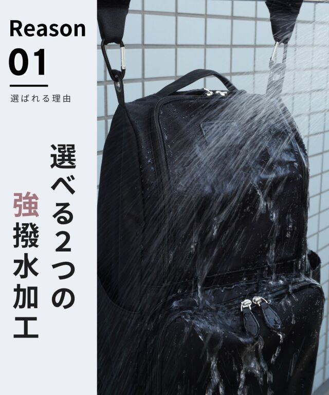 【ブラック】強撥水ナイロンは、レインコート級の撥水力で丈夫で汚れに強くお手入れが楽なのが特徴です。