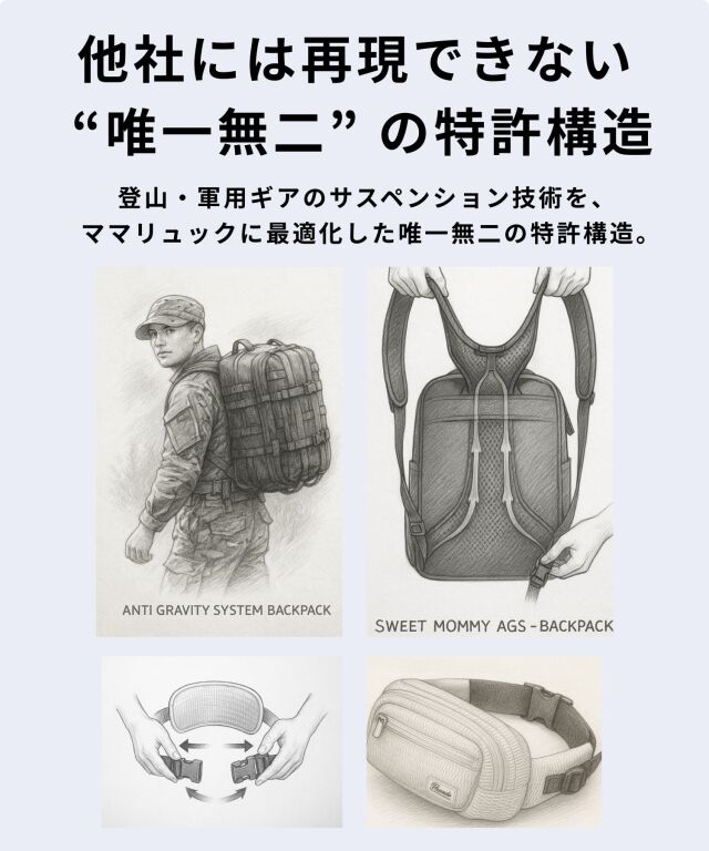日本初!AGS機能搭載のマザーズリュック