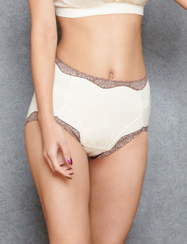 マタニティウェアと授乳服の通信販売スウィートマミーおすすめのオーガニックコットン日本製ショーツは産後のボディを優しく引き締める補正下着。パワーネットが程よくフィットしてウエストラインがきれいと口コミでも評判。かわいいストレッチレースが人気。