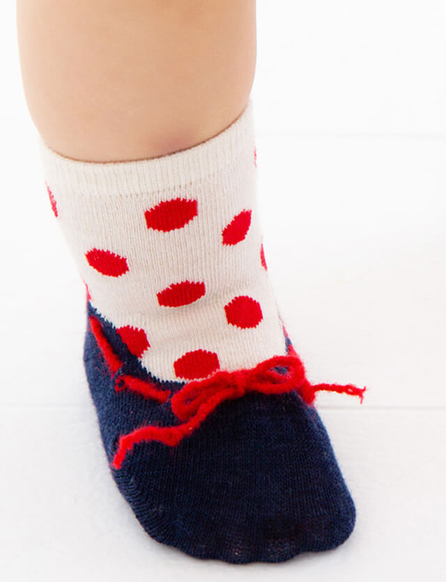 日本の靴下職人さんが、立体的なモチーフを特殊な機械で編み上げた、バレエシューズのモチーフがとっても可愛い日本製の靴下です。「あらっ、こんなに小さいバレエシューズがあるの?」と思わず目を引く、かわいらしさ。まだ あんよをしない赤ちゃんにも、おしゃれなバレエシューズスタイルがお楽しみ頂けます♪♡