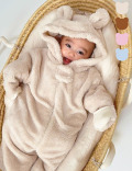 とろける肌触りのボアに包まれたもこもこ姿のベビーは思わず振り返るほどの可愛さ。