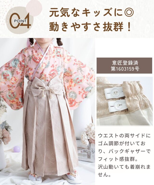 大人気『ベビー袴ロンパース』を兄弟や姉妹で可愛く着たい!そんなお声から100~120cmサイズのキッズ袴が遂に登場いたしました。2ピース仕様で本格的なのに、着脱も簡単です。お正月や卒園式、結婚式など和装フォーマルにぴったり。お子様のお祝い事の付き添いにもぴったりです。授乳服とマタニティのスウィートマミーがおすすめするキッズウェアです。