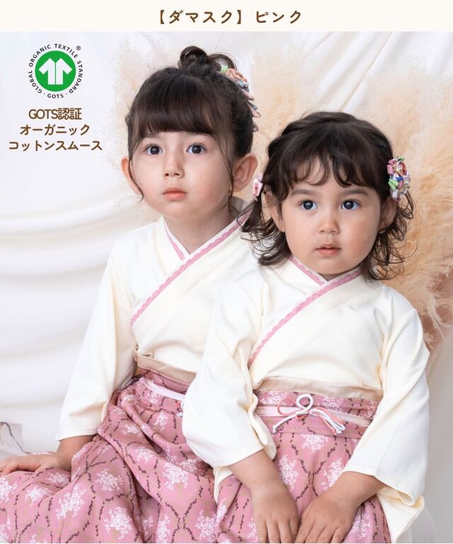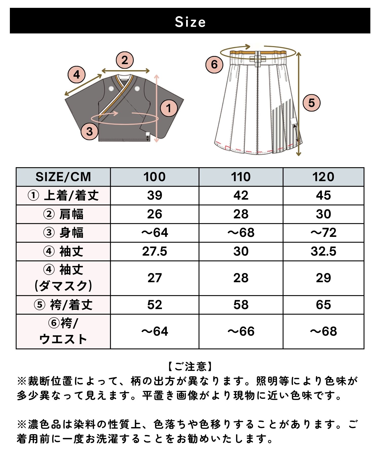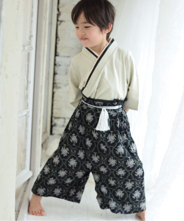 家紋刺繍付き キッズ袴 袴風 2点セット 100 110 120cm コットン 本格 袴 春 秋 冬 卒園式 お正月 端午の節句 七五三 着付け 不要 記念撮影 初詣 子どもの日 ひな祭り 初節句 お宮参り 結婚式 親子リンク 紬風 家紋 紋付き 和柄 ダマスク 古典柄 コーデ 袴 はかま オリジナル 袴セット 男の子 女の子 小学生