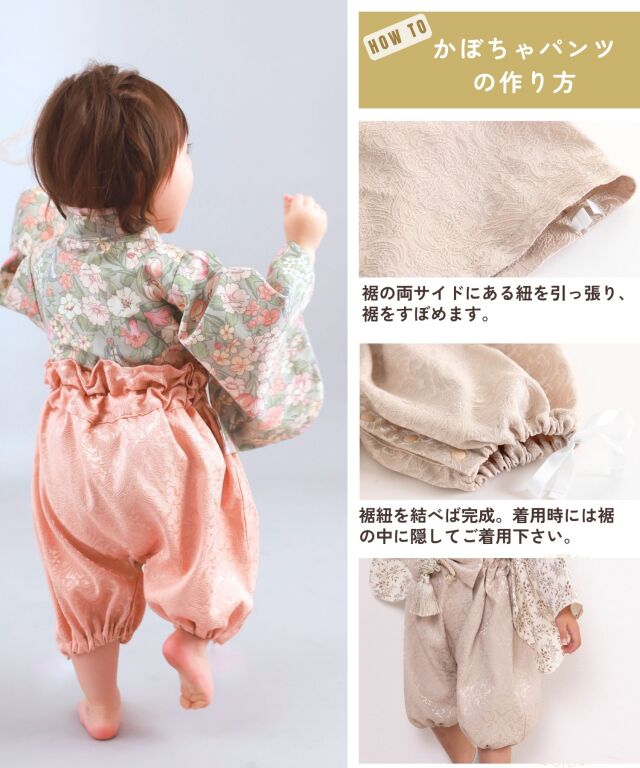 ドレス風、袴風、かぼちゃパンツ風の裾3WAYで、切り替えも簡単楽々! 成長や好みに合わせて、着方が変えられます。