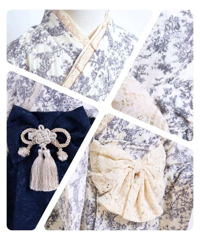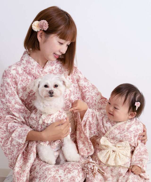 お揃いのトワルドジュイ柄袴ロンパースのトップスと合わせて、浴衣/着物風の着こなしが叶う!
