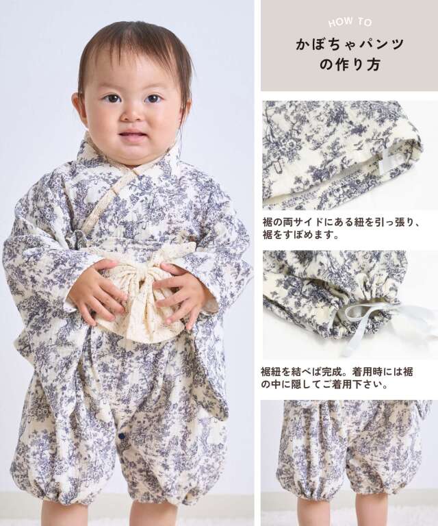 お揃いのトワルドジュイ柄袴ロンパースのトップスと合わせて、浴衣風の着こなしが叶う!男の子も女の子も可愛く素敵映えする浴衣スカートです。スカート、パンツ風、かぼちゃパンツ風の裾3WAYで切り替えも簡単。お子さまの好みや成長に合わせて、自由に変えられます。通気性と吸水性に優れたコットン100%ガーゼ素材なので、蒸し暑い季節にぴったり。汗をかいてもベタつかず、空気をまとうような軽やかさが魅力です。ふんわりとした風合いで肌への刺激も少なく、赤ちゃんにも安心・安全です。