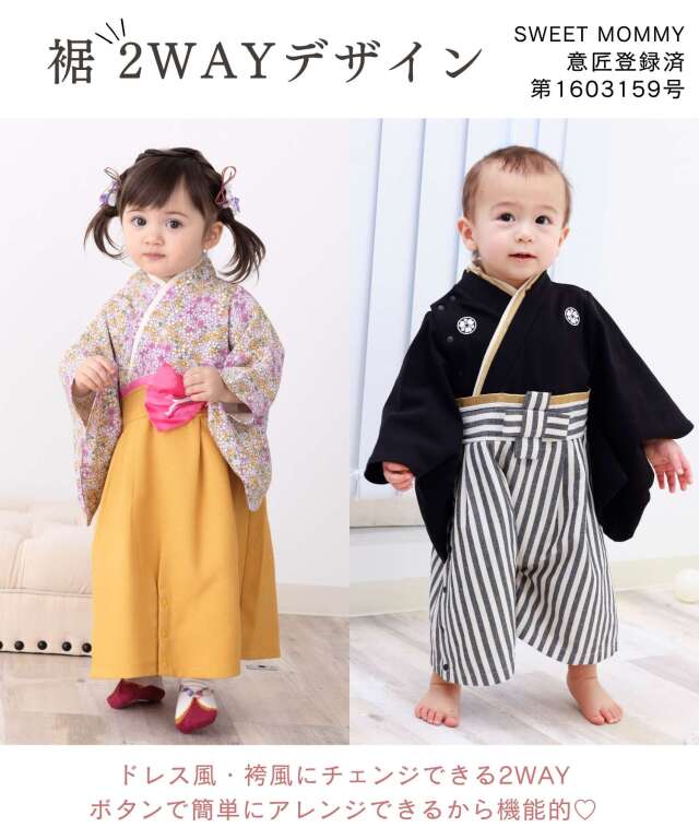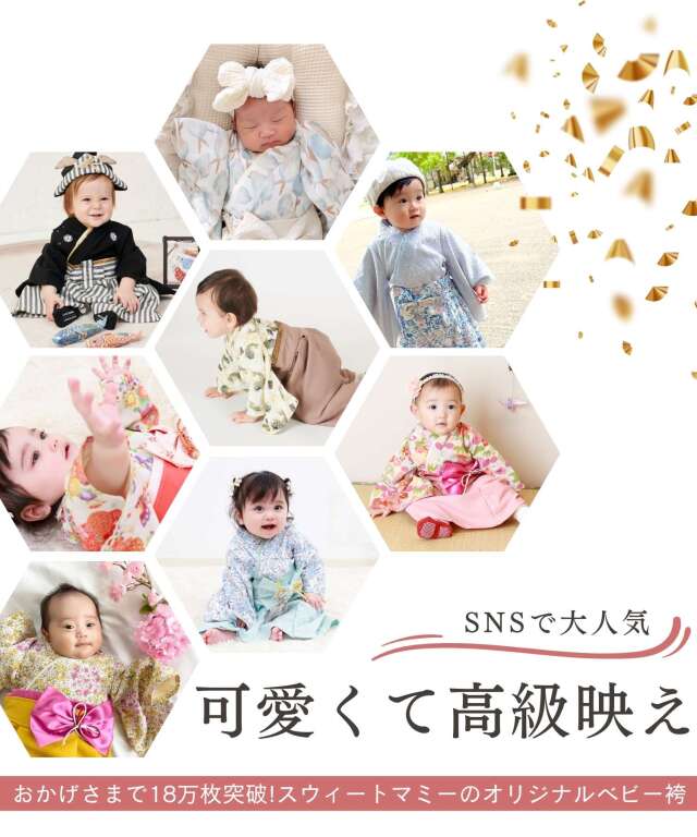 お宮参り・お食い初め、初節句やお正月、七五三の付き添いなど、様々なシーンで活躍するスウィートマミーおすすめのベビー袴。華やかな和柄が着映えるベビーウェアは好印象間違いなし!着せやすさも、優しさもベビーーの事を1番に考えました。