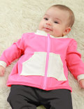 フロントはファスナーで全開するので、お着替えも楽ちんです。フロントのポケットがおしゃれなポイントに。