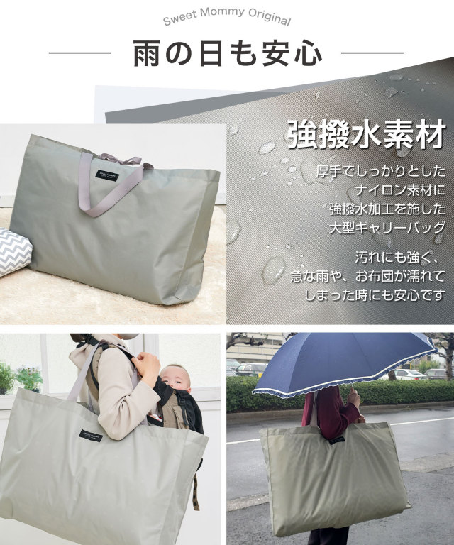 | 素材 | ヌード布団:側生地/ポリエステル100%、中身/ポリエステル100% カバー:生地/綿100% バッグ: ナイロン100%(強撥水加工生地) |
