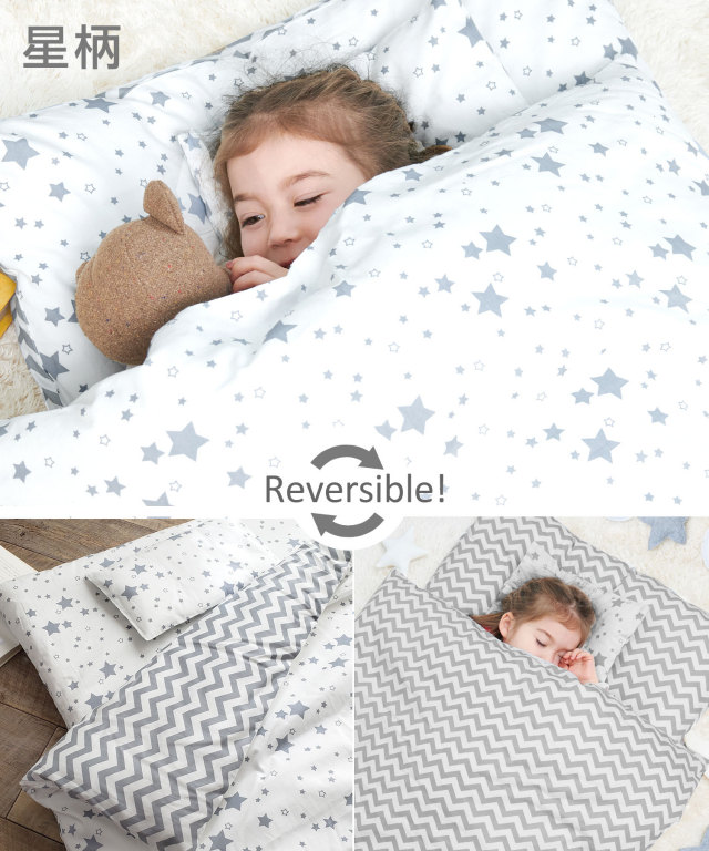 ママとベビーに寄り添うモノ作りブランド、スウィートマミーから、お昼寝布団セットが登場いたしました。通園にママが持ち運びしやすいよう軽量化。中綿布団は日本製のウォシュロンワタを使った丸洗いできるベビー布団セットで、清潔を保てます。カバーは、可愛らしい北欧柄、しかもリバーシブルで楽しめます。初めての幼稚園・保育園準備にぴったりのお昼寝布団セットです。