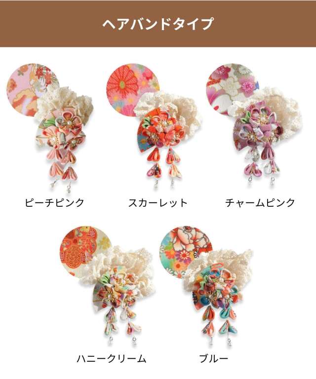 繊細なつまみ細工で作られたベビー用ヘアアクセサリー。スウィートマミーで大人気の袴ロンパースとお揃い素材でつくられたコーディネートにおすすめのアイテムです!お雛祭りやお正月お誕生日などにも!