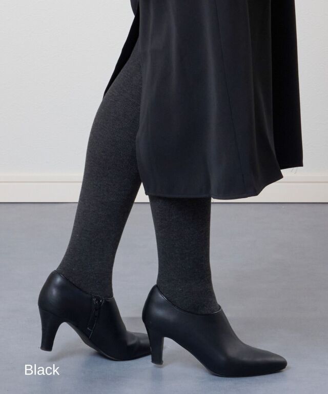 冷え対策のマタニティタイツ。リブタイツで脚長見せに。シンプルベーシックで着回しが効き、コーデもしやすいタイツは1枚は持っておきたいマタニティママの必須アイテムです。