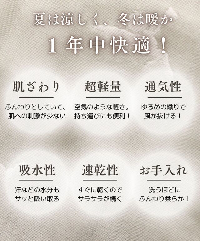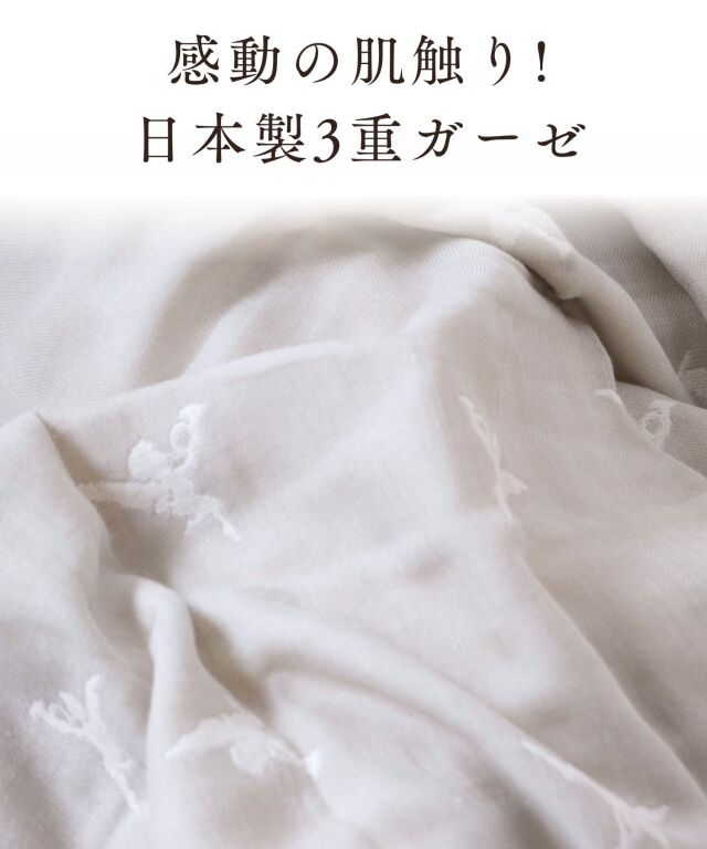 ふんわり触り心地抜群の3重ガーゼを使用し、赤ちゃんのお肌にも安心・安全。
