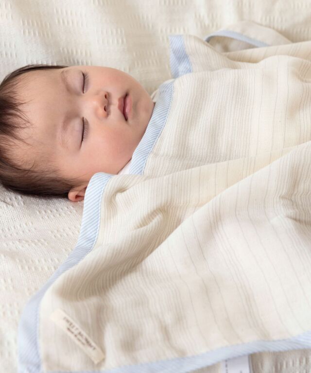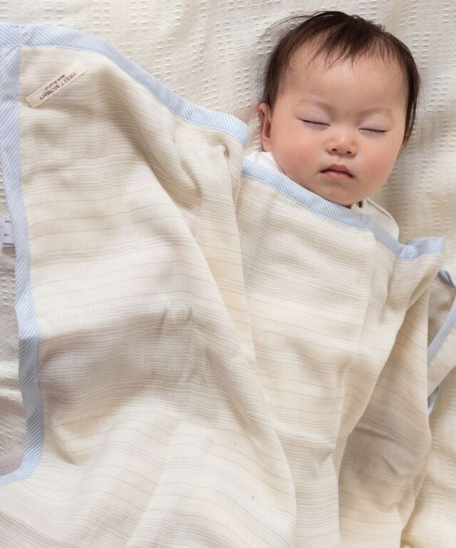 オリジナルデザインのおくるみ♪赤ちゃんのお肌に優しい3重ガーゼのおくるみはとってもおしゃれ!生まれたての赤ちゃんはそっとおくるみにくるまれるととっても安心するもの。優しい素材感で赤ちゃんを包み込みます。