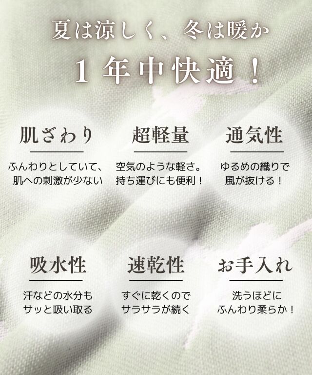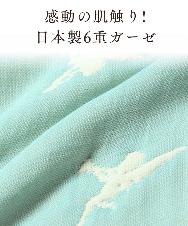 ふんわり触り心地抜群の6重ガーゼを使用し、赤ちゃんのお肌にも安心・安全。