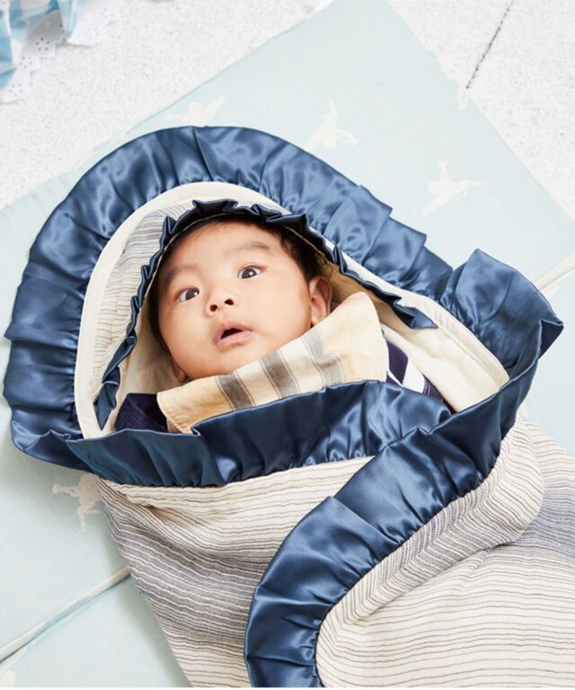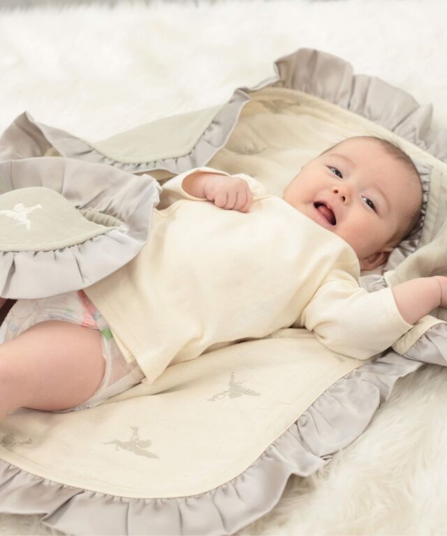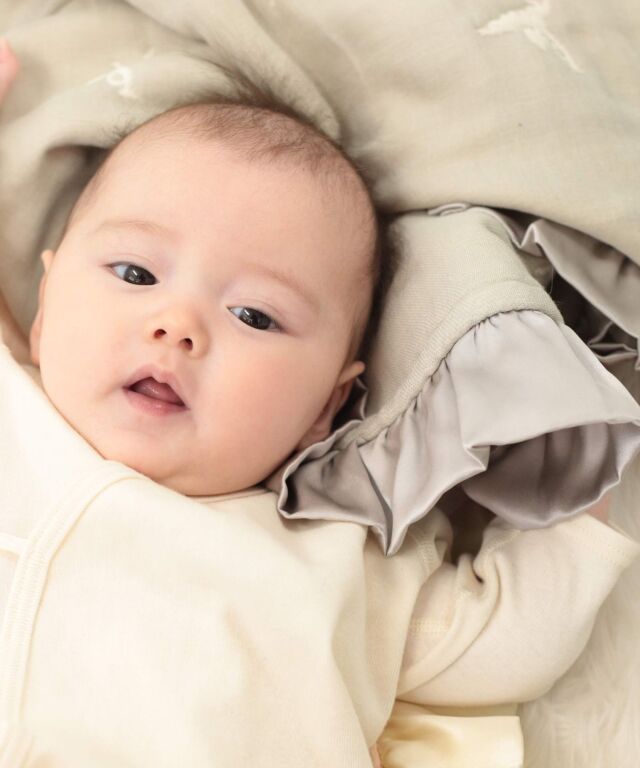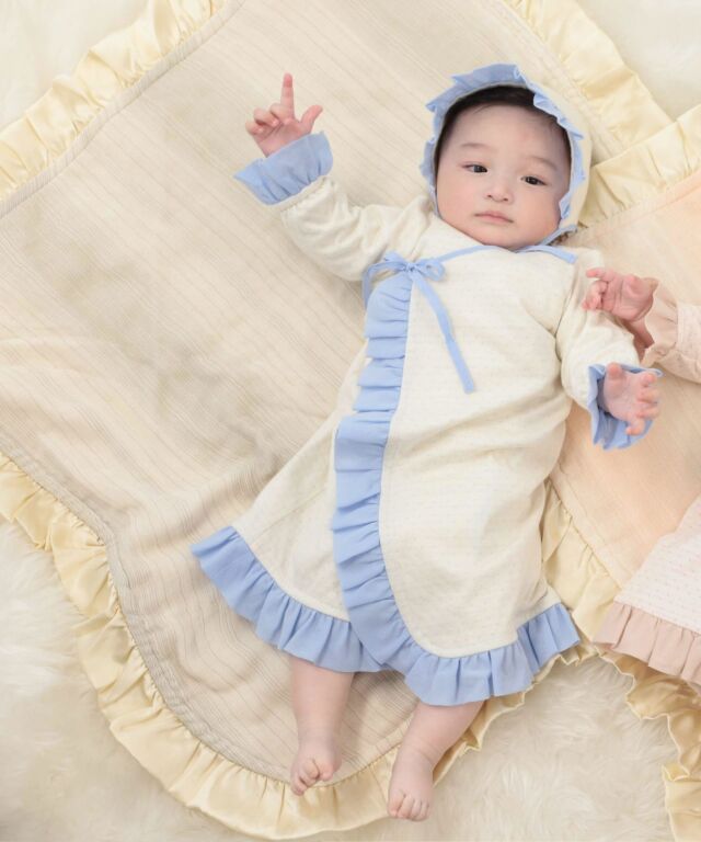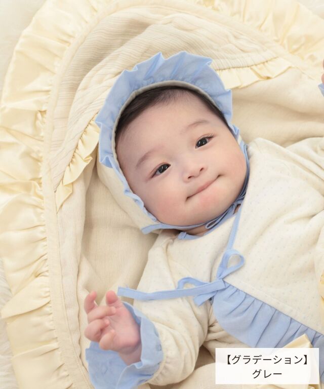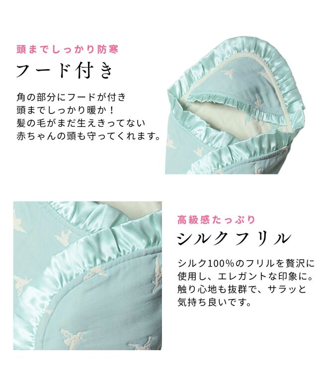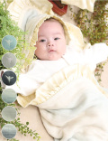 ふわふわ6重ガーゼとシルクフリルのエレガントおくるみ