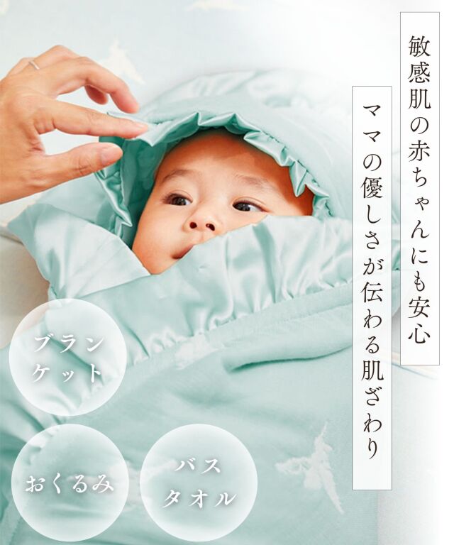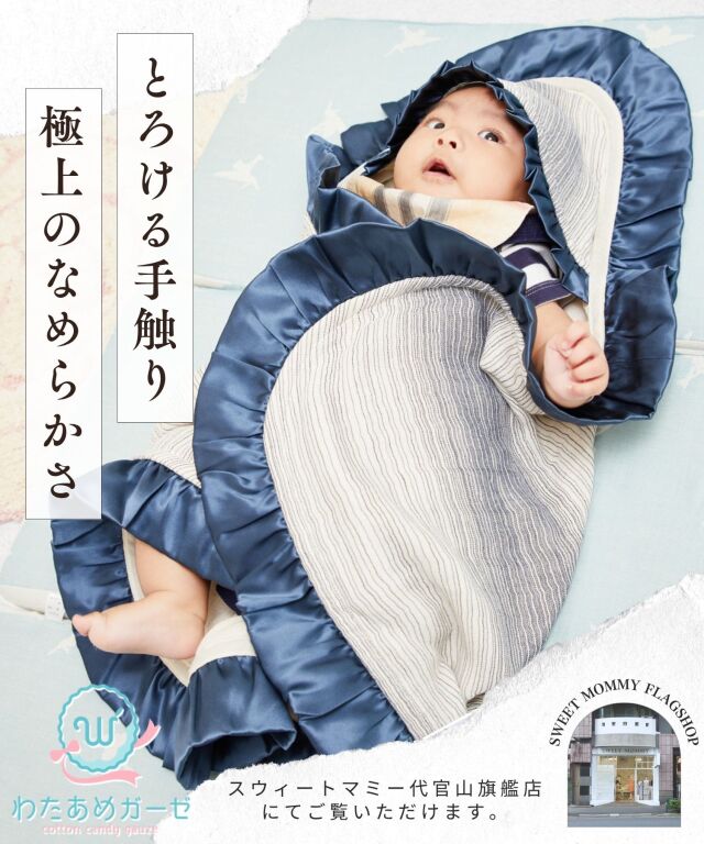 退院時やお披露目など生後間もなくから寝かしつける時、ブランケットなど様々な用途に使え、1枚は持っておきたい必須アイテムです。