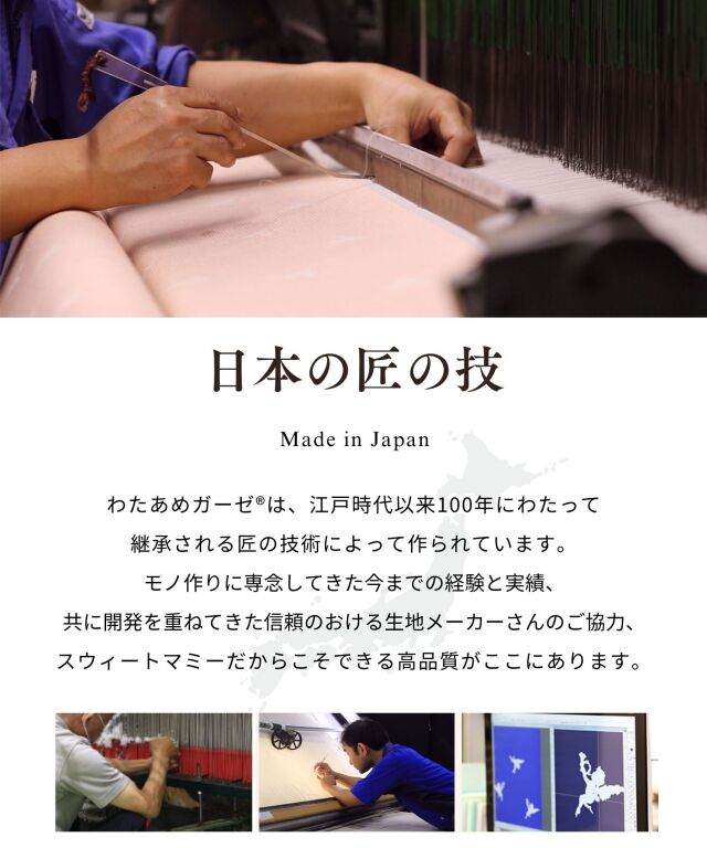 日本の伝統技術を生かした、こだわりの最上級匠ガーゼシリーズ。ふんわり軽く、とろけるような優しい”わたあめ”ガーゼの『おくるみ』です。