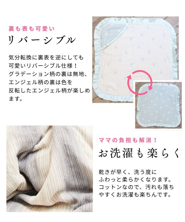 赤ちゃん/ベビー/ギフト/出産祝い/贈り物/防寒/おくるみ/ブランケット/授乳ケープ ガーゼ 大判 ひざ掛け 日よけ かわいい 速乾 吸水性 通気性 出産祝い ギフト プレゼント お祝い 綿 敏感肌【カラー】グレー/ブルー/ネイビー/グラデーション 天使 くすみカラー