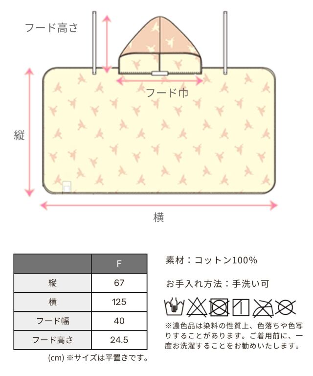 ※サイズは平置きです。F 縦 67 横 125 フード巾 40 フード高さ 24.5