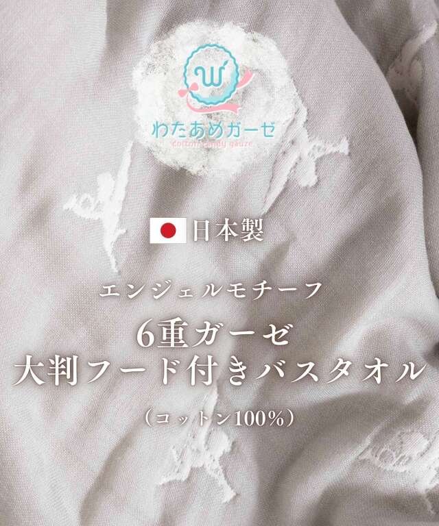 天使のモチーフが可愛い!肌触りが優しく、吸水性に優れた6重ガーゼタオルです。