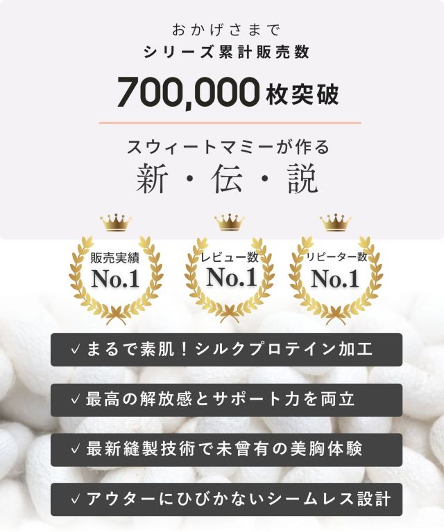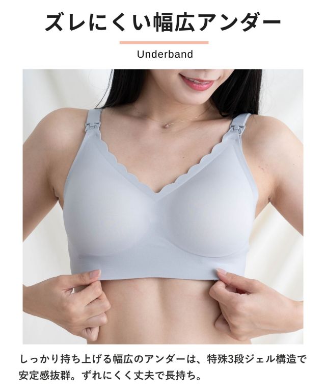 まるで素肌みたい!360度シームレスでストレスフリーな未来ブラ。レースデザインで見た目もとても可愛いのがポイント。ノンワイヤーとは思えないホールド感でスウィートマミーおすすめのブラジャー。マタニティブラジャーとしてもおすすめ。マタニティウェアと授乳服の通信販売スウィートマミーの大人気下着シリーズです。