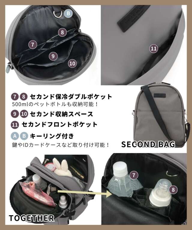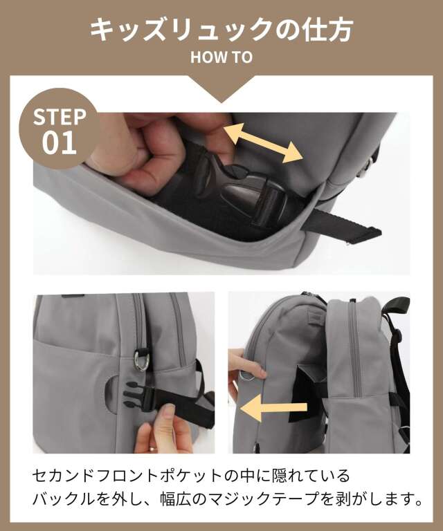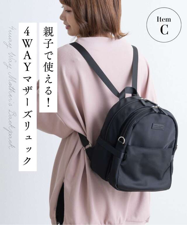 お出かけに必要な荷物をたっぷり収納でき、親子でシェアできる万能リュックです。