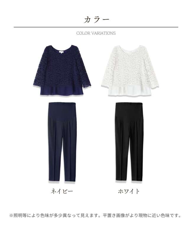 マタニティウェア/セレモニースーツ/セットアップ/授乳口/授乳トップス/パンツ/フォーマル/レース/産前産後 パンツスーツ ママスーツ 卒園式 卒業式 入園式 入学式 セットアップ オケージョン