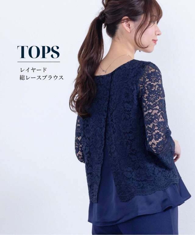 上品さとスタイリッシュさを兼ね備えた、レーストップスとテーパードパンツのセットアップです。