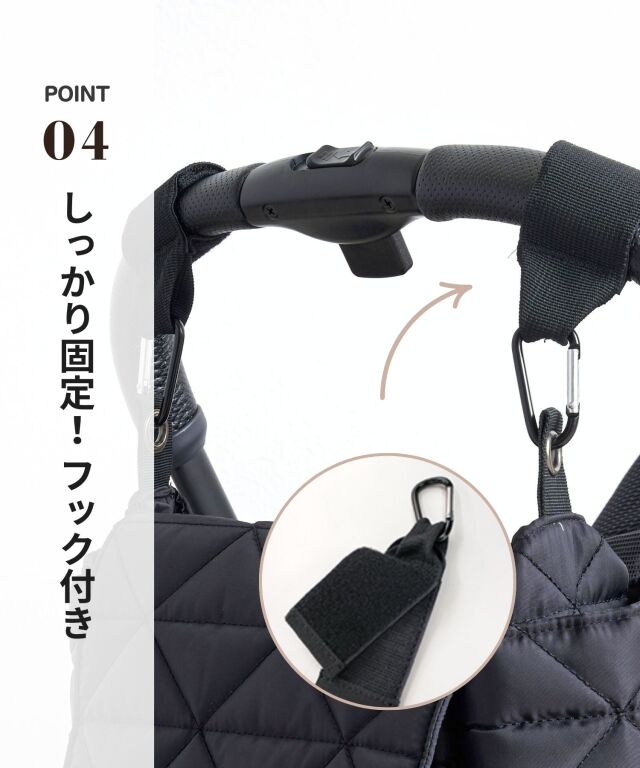 ※ベビーカーやペットカートなど太さ11cm(周)まで取り付け可能です。 ※摩擦による色落ちの恐れがあるので強くこすらないでください。 ※バッグの中に入れる物にも色移りする恐れがあります。特に淡色系の物はご注意ください。 ※ご家庭での洗濯はお避けください。 ※高温、多湿を避け、風通しの良い場所で保管ください。直射日光の当たる場所に長時間放置されますと色があせたり、変形の原因となります。 ※お子様が引っ張ったり振り回したりなどしないようご注意ください。 ※部品が破損した場合は、ご使用を中止してください。また、ペットの小さな部品の誤飲には特にご注意ください。 【カートフック】 ※本製品のカラビナは登山用ではありません。そのため、横からの強い衝撃を加えた場合、バネが破損する場合がございます。 ※荷物の掛け過ぎに等にご注意ください。 |