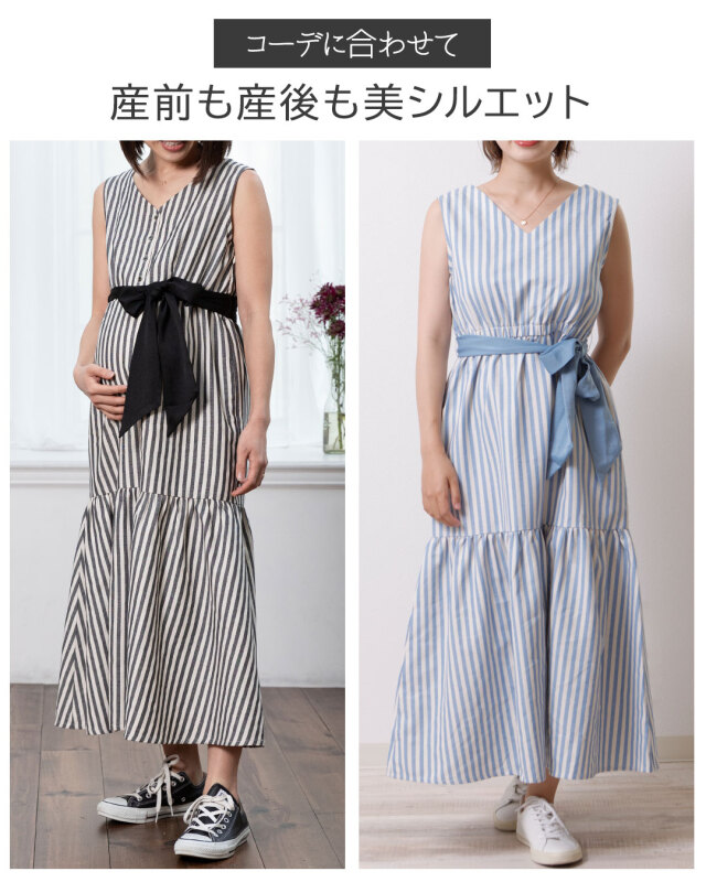 マーメイドワンピース 産前産後兼用 マタニティ 服 マタニティウェア 授乳服 授乳口 ロングワンピ ロング丈 ワンピース ストライプ 縦縞 ポケット リボン ウエストゴム ノースリーブ マーメイドライン 春 夏 春夏 盛夏 夏服 体型カバー 臨月 親子リンクコーデ 母親 ママ ワンピース 袖なし マタニティワンピース マーメイド 可愛い おしゃれ 前開き ポケット ポケット付き カジュアル ロング マキシ【カラー】ホワイト/ブラック/ブルー/ 白/黒/青