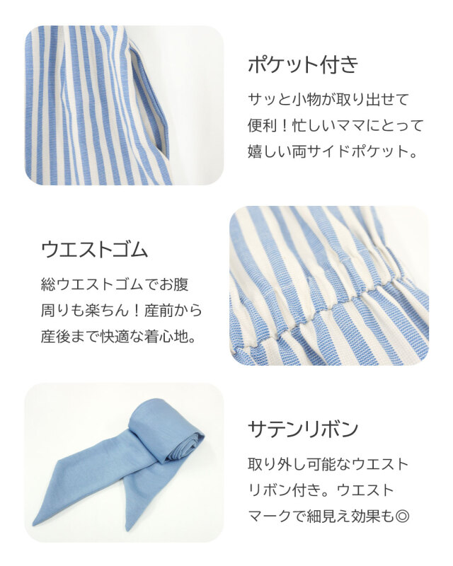 | 製品名: | マーメイドライン ストライプワンピース 授乳服マタニティウェア 産前産後兼用 |