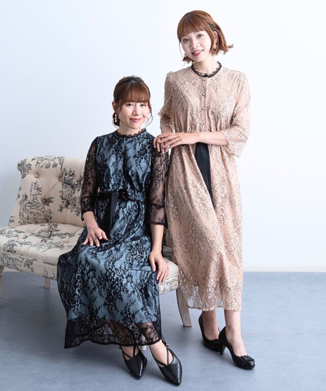 繊細で高級感漂う上品レースを贅沢にあしらった、総レースワンピースです。チクチクせず、やわらかな肌触りのレース生地で、披露宴など座っている時間が長い時にもシワになりにくいところも嬉しいポイント!ワンピースの胸元は授乳しやすい前開きタイプ。一番上はスナップボタンになっており、開閉も簡単です。首元がつまったレースデザインなので、ネックレスなしでもお呼ばれシーンでサマになります。