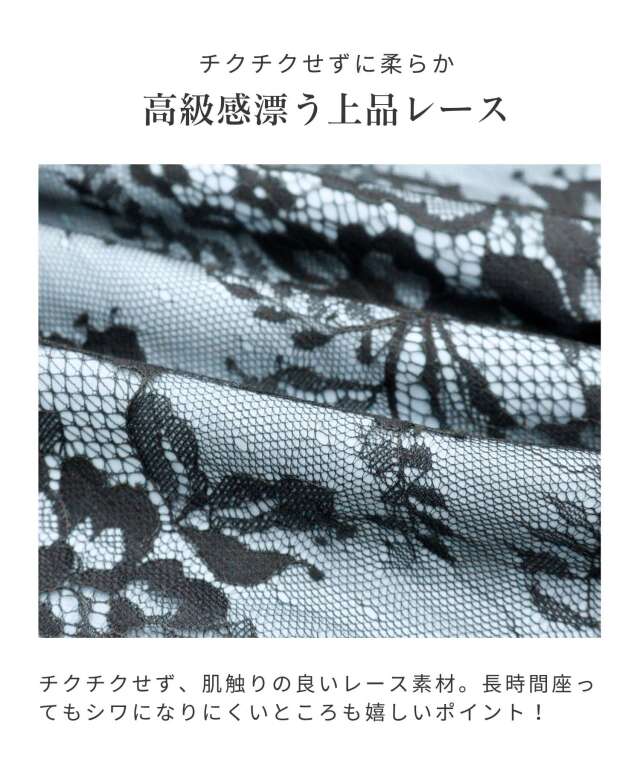 チクチクせず、やわらかな肌触りのレース生地で、披露宴など座っている時間が長い時にもシワになりにくいところも嬉しいポイント。