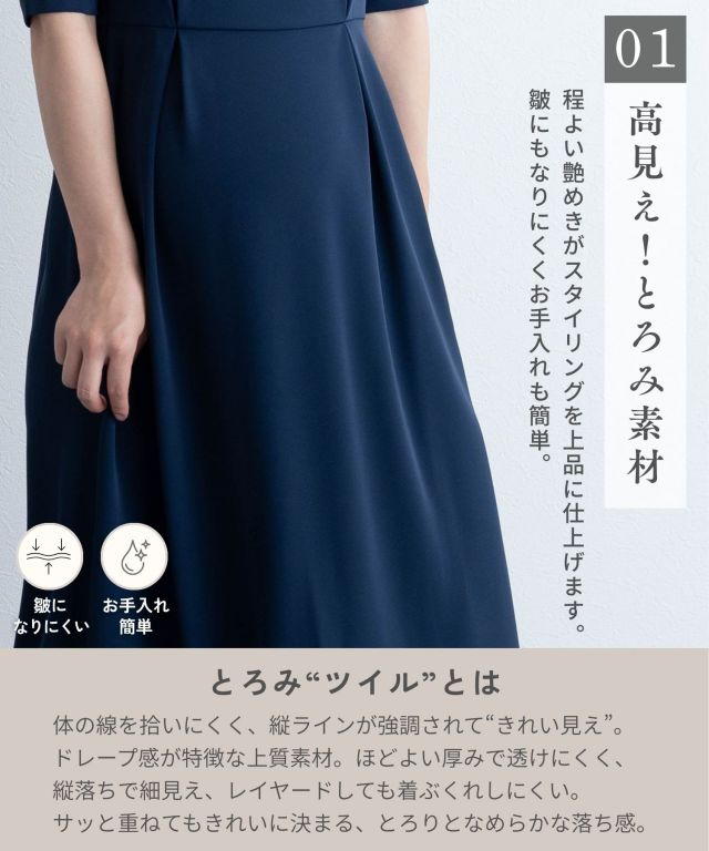 1着で幅広く対応できる、清楚な正統派ワンピースです。
