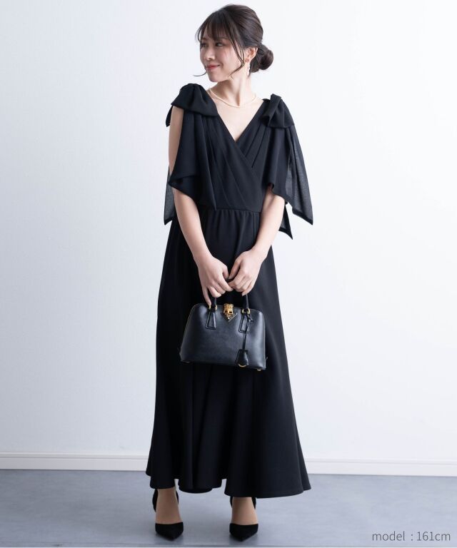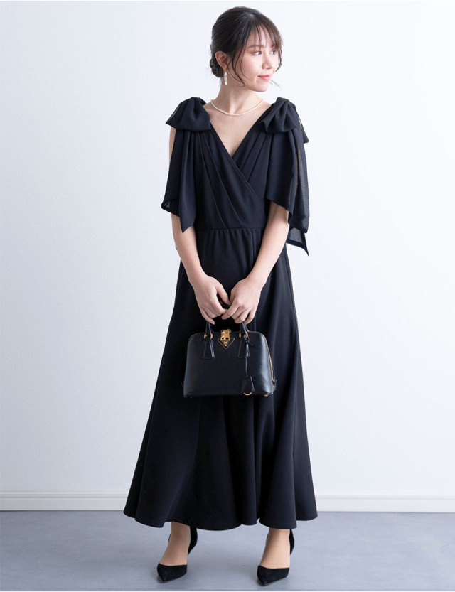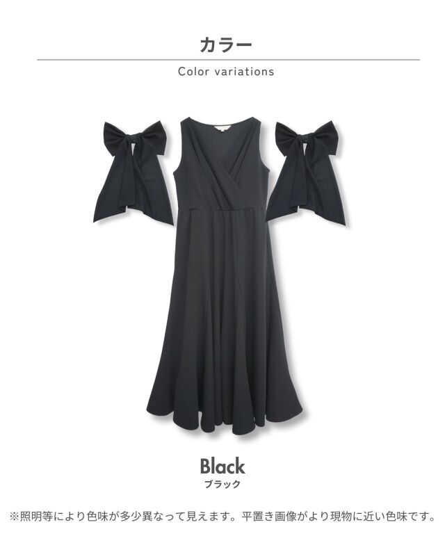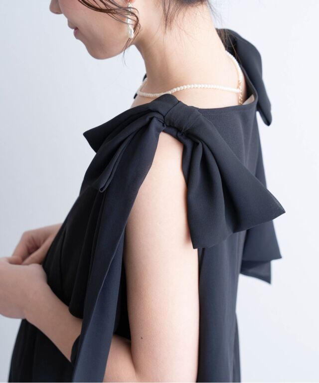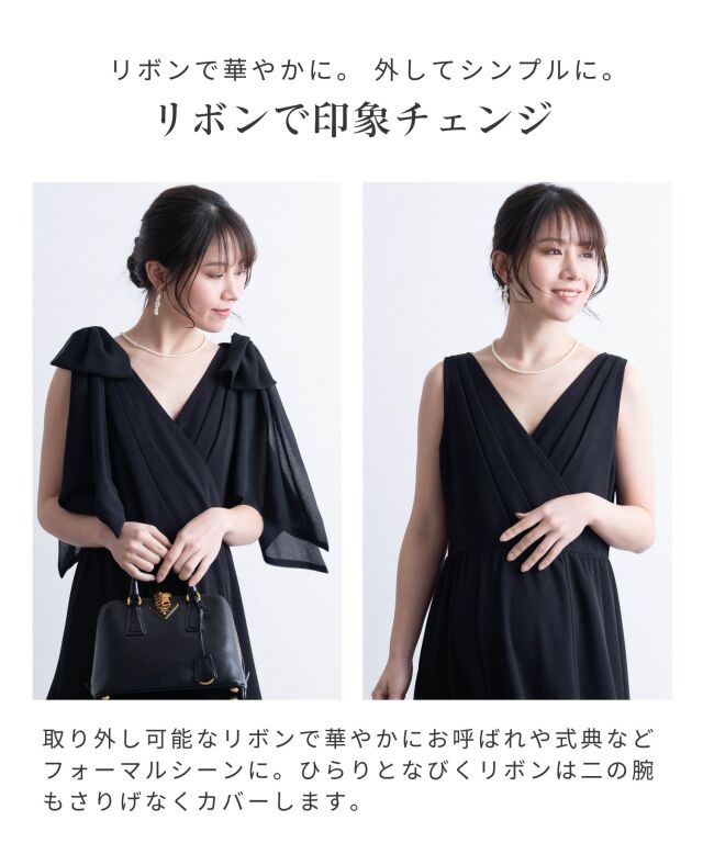 お呼ばれや式典などフォーマルシーンに対応し、ひらりとなびくリボンは二の腕もさりげなくカバーします。
