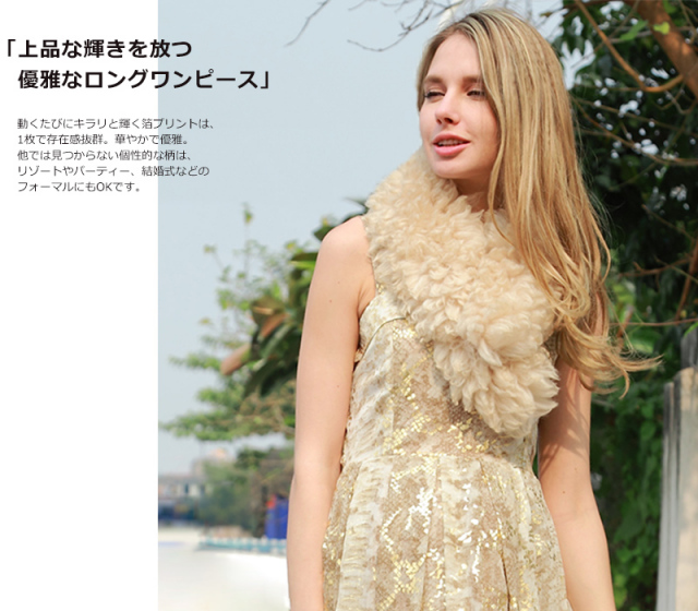 美しい箔プリントが優雅なロングワンピース