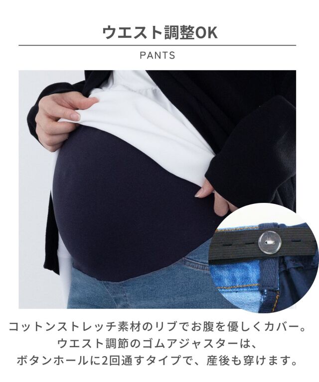 1人目ということもあり、周りに気付かれないほどお腹は目立ちませんがやっぱり今まで着ていたものは少しずつキツくなってきていたのでマタニティデニムを探していました。普段着る服はSサイズ、ものによってはXSサイズを着ていました。このブーツカットデニムだと1番小さくてMサイズだったので正直サイズが合うか心配していました。届いてすぐ履いてみましたがももの太さも丈も履き心地もすごく良かったです!!丈に関しては時々ローヒールサンダルを履いたりする私からするとベストな丈でした。12月に出産予定なので秋冬はブーツと合わせて履くのが楽しみです♪ |